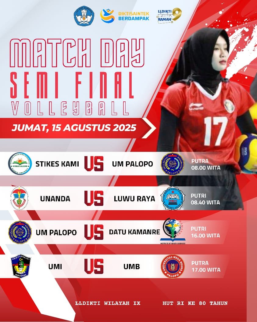“Babak semifinal ini akan menjadi pertarungan yang menarik. Kami berharap semua tim dapat bermain maksimal, sportif dan menjadikan momen ini sebagai ajang silaturahmi serta mempererat persaudaraan antar perguruan tinggi,” ujarnya.