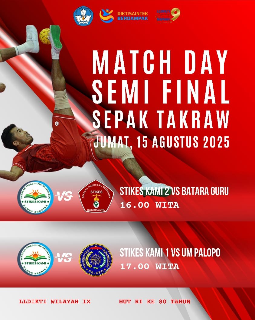 Pertandingan semifinal dijadwalkan berlangsung Jumat 15 Agustus 2025, dengan dukungan penuh dari para suporter yang siap memadati lapangan STIKES Kamus Arunika. Semua mata kini tertuju pada siapa yang akan melangkah ke partai final dan membawa pulang gelar juara.