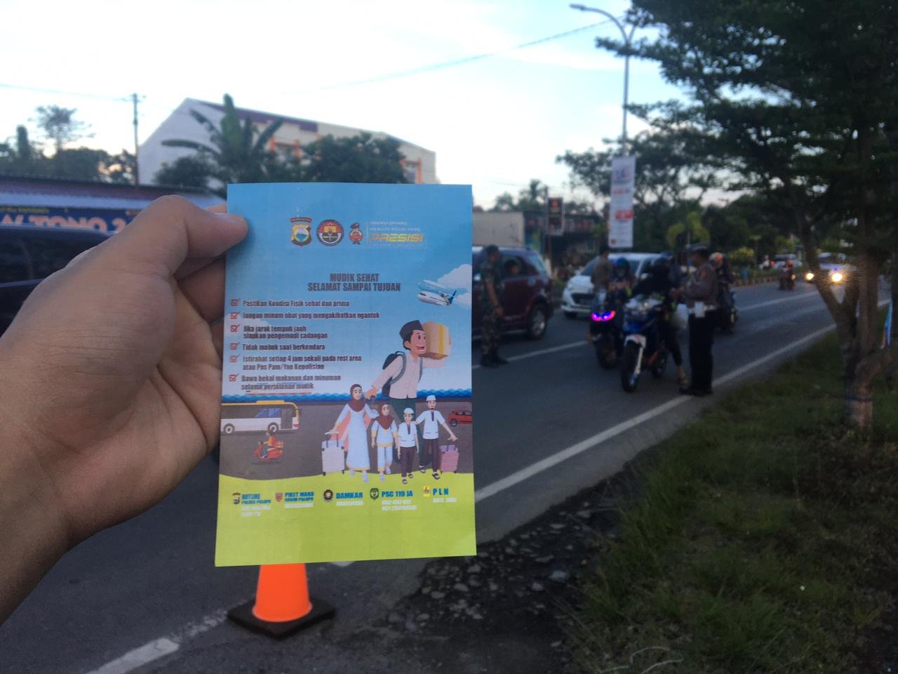 Pembagian brosur tersebut dilakukan di pos pengamanan lebaran islamic center, jalan Trans Sulawesi, kecamatan Wara Selatan, Kota Palopo.