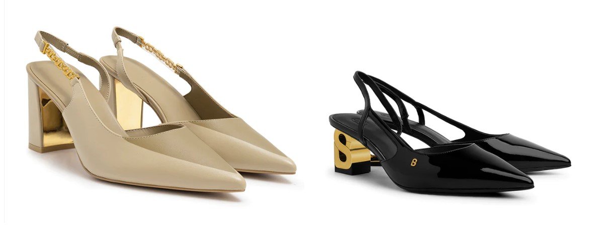 The Be Heels bisa dikatakan sebagai salah satu sepatu heels ikonik dari lini fashion ini. Alih-alih menggunakan hak sepatu yang berbentuk kotak, sepatu heels ini menggunakan hak dengan bentuk menyerupai emblem khas Buttonscarves berwarna emas yang tebal. Bagian depan sepatu heels menutupi jari kaki dna runcing, lalu bagian belakang terbuka dengan tali sebagai pemanis.