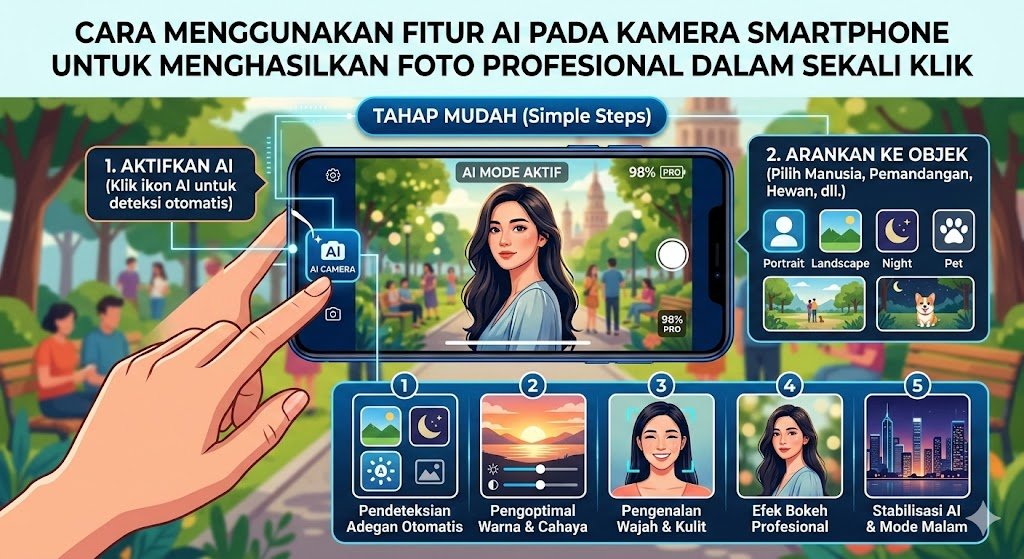 Dunia fotografi mobile telah mengalami revolusi besar berkat kehadiran Artificial Intelligence (AI). Jika dulu kita membutuhkan kamera DSLR yang berat dan pengaturan manual yang rumit untuk mendapatkan foto estetis, kini teknologi kecerdasan buatan dalam genggaman tangan mampu melakukan segalanya secara otomatis. Fitur AI pada kamera smartphone bukan sekadar tren, melainkan asisten pintar yang bekerja di balik layar untuk mengoptimalkan setiap piksel gambar yang Anda ambil.
