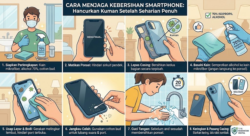 Bagi Anda yang menginginkan tingkat kebersihan lebih tinggi, penggunaan alat pembersih sinar UV-C bisa menjadi solusi tambahan yang menarik. Perangkat kotak UV khusus ini diklaim mampu membunuh hingga 99 persen bakteri dan virus melalui radiasi ultraviolet tanpa menggunakan cairan kimia sama sekali. Cukup masukkan ponsel ke dalam kotak selama beberapa menit, dan sinar tersebut akan bekerja menjangkau celah-celah kecil yang sulit dijangkau oleh kain. Namun, meskipun menggunakan teknologi canggih, pembersihan fisik secara manual tetap harus dilakukan secara rutin setiap malam untuk memastikan residu minyak dan keringat benar-benar terangkat dari permukaan smartphone kesayangan Anda.