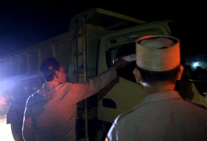 Selain membangun kan warga bersantap sahur, petugas juga memberikan paket menu sahur kepada masyarakat dan pengendara yang melintas.