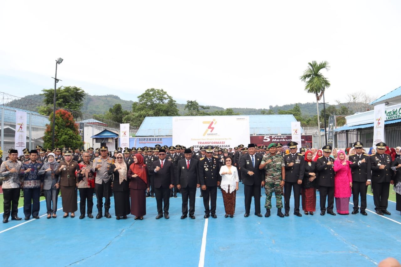 PALOPO, | Dandim 1403/Palopo Letko Arm Kabit Bintoro Priyambodo, menghadiri puncak peringatan hari Bhakti Imigrasi Ke-74 di Kantor Lembaga Permasyarakatan Kelas II-A Palopo, Jumat (26/01/24).