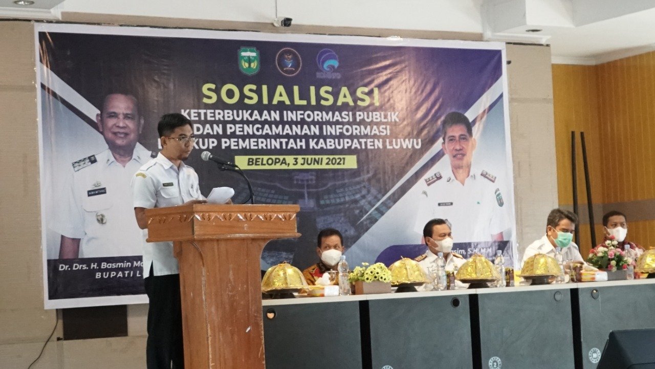 LUWU, | Pemerintah Kabupaten Luwu melalui Dinas Komunikasi Informatika Statistik dan Persandian menggelar sosialisasi keterbukaan informasi publik dan pengamanan informasi aula Badan Perencanaan Pembangunan dan Litbang Kab. Luwu, Jalan Andi Djemma, Belopa, Kamis (03/06/2021).