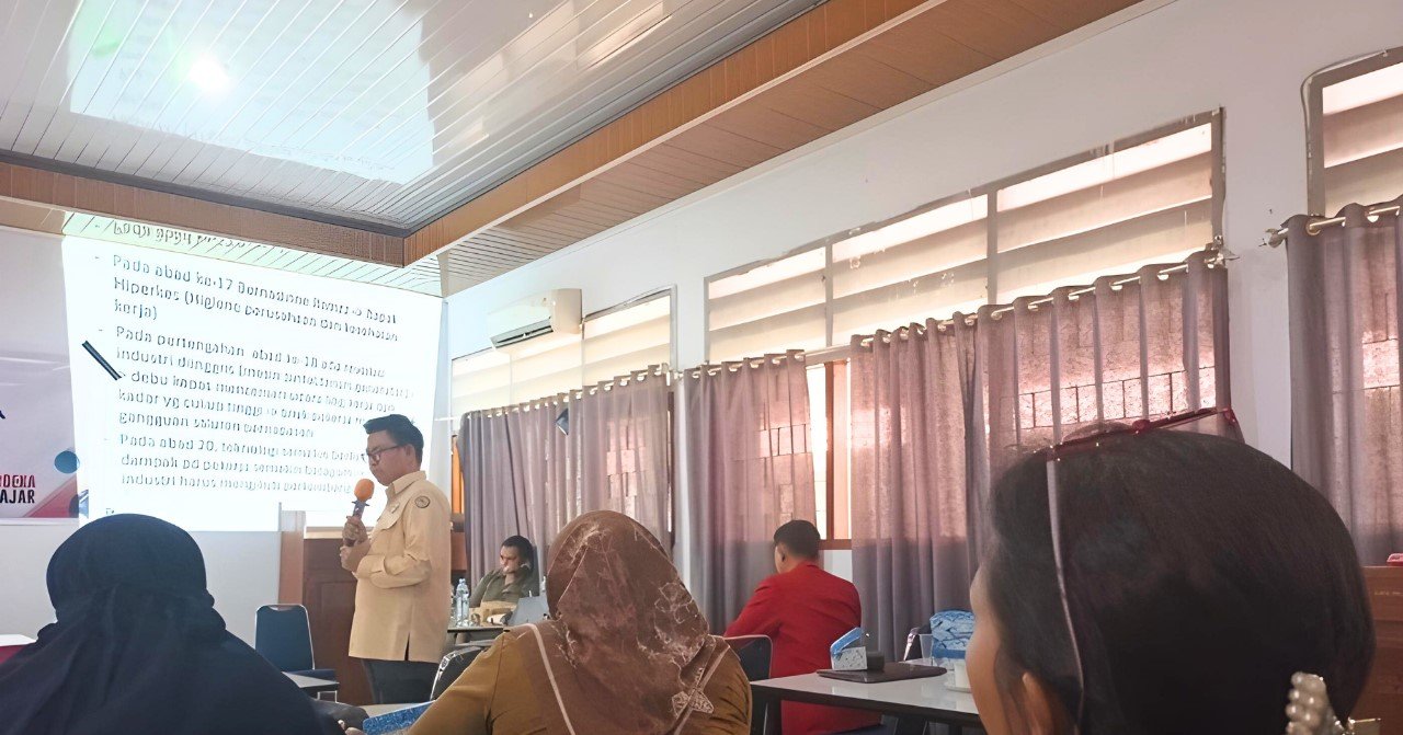 Palopo | Dosen Program Studi Keselamatan dan Kesehatan Kerja (K3) STIKES Kamus Arunika, Muhammad Suharsono diundang untuk menjadi narasumber kegiatan Workshop Pembelajaran TEFA (Teaching Factory) bersama praktisi K3 lainnya di Aula SMKN 1 Palopo. Selasa (23/7).