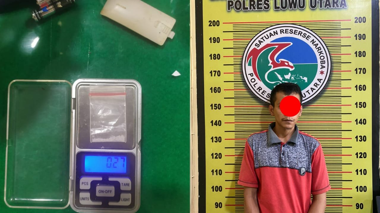 “Setelah anggota memberhentikan terduga pelaku, dengan cepat melakukan penggeledahan dan ternyata 1 paket (sachet) plastik klip bening, berisi butiran kristal bening yang diduga shabu dengan berat kotor 0,27 gram dengan shacetnya dan 1 (satu) lembar kertas foil rokok dalam genggamannya,” ucap Kasat Narkoba Polres Lutra