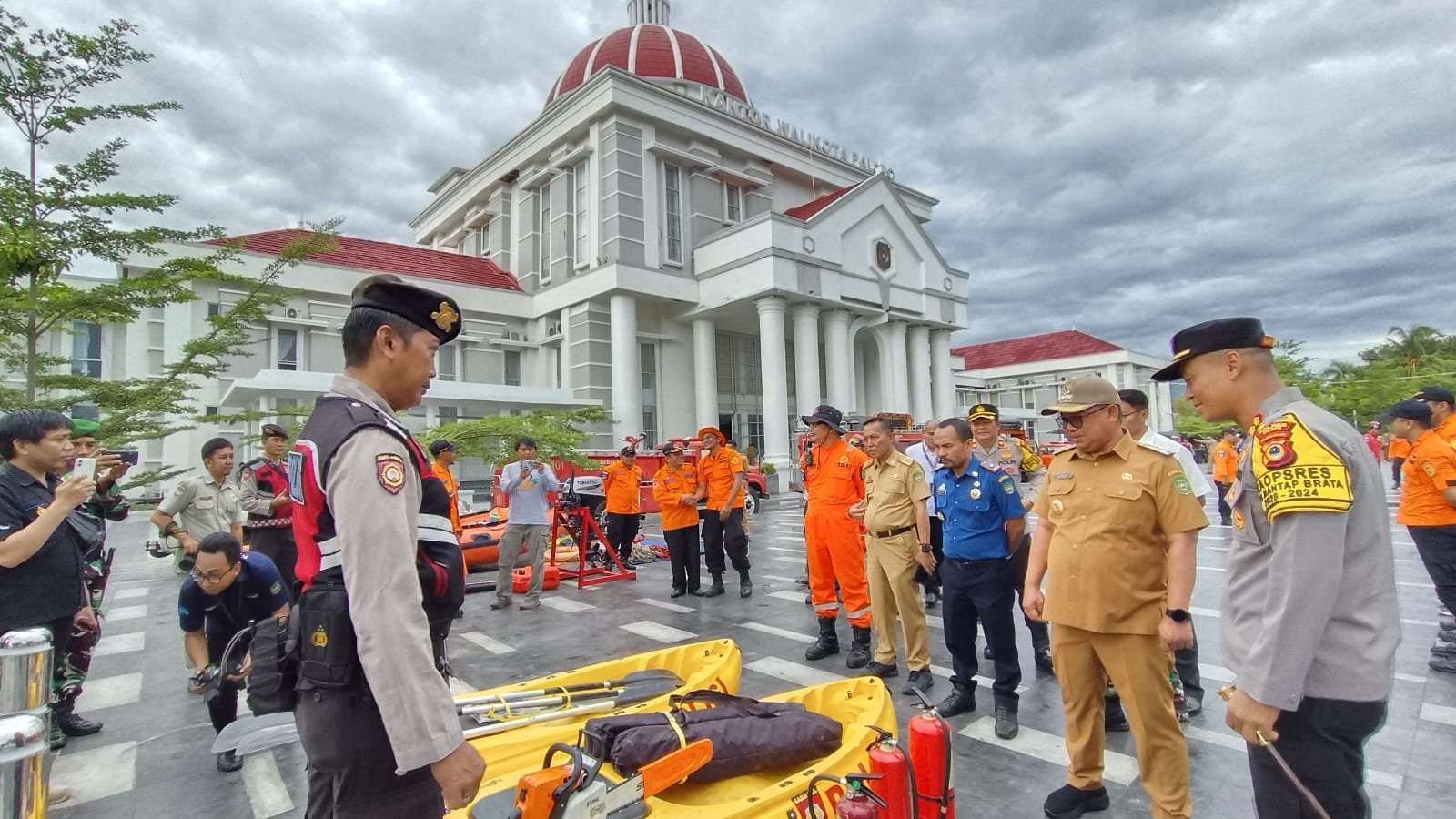 PALOPO, | Pemerintahan Kota Palopo bersama dan TNI -Polri serta Instansi terkait melaksanakan apel siaga dan gelar peralatan dalam rangka kesiapsiagaan menghadapi ancaman bencana di wilayah Kota Palopo, di halaman kantor Wali Kota Palopo, Senin (08/01/24).
