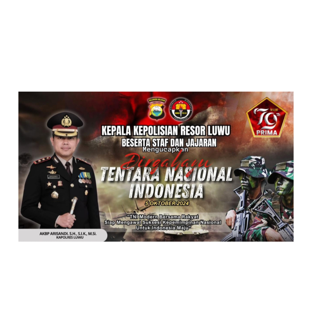 ” Saya dan seluruh jajaran di Polres Luwu pada kesempatan berbahagia ini dalam rangka hari HUT TNI kami mengucapkan selamat hari HUT ke-79 sesuai temanya ” TNI moderen bersama rakyat, siap mengawal suksesi kepemimpinan nasional untuk Indonesia maju,” Ujar AKBP Arisandi, Sabtu (05/10/24).