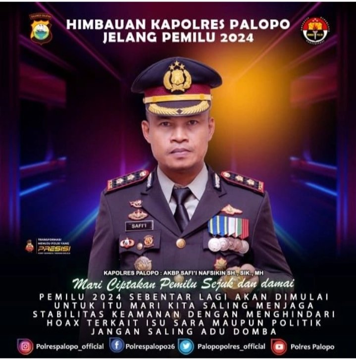 PALOPO, | Menjelang pemilihan umum (Pemilu) 2024 dan perayaan natal serta tahun baru, Kapolres Palopo AKBP Safi’i Nafsikin mengajak kepada masyarakat untuk selalu bijak ber media sosial dan meningkatkan kewaspadaan terhadap berita palsu atau hoaks.