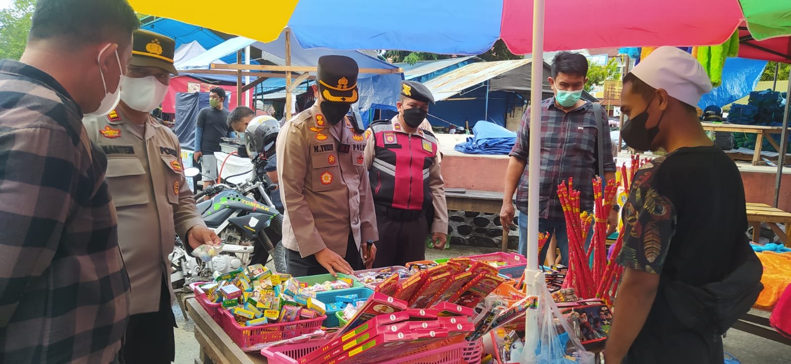 PALOPO, | Guna memberikan rasa nyaman dalam pelaksanaan ibada di bulan suci Ramadhan, Kepolisian Resort Kota Palopo mendatangi sejumlah Pedagang Kembang Api, di Seputaran Pusat Niaga Palopo, Jl. Rambutan, Selasa (05/04/22).