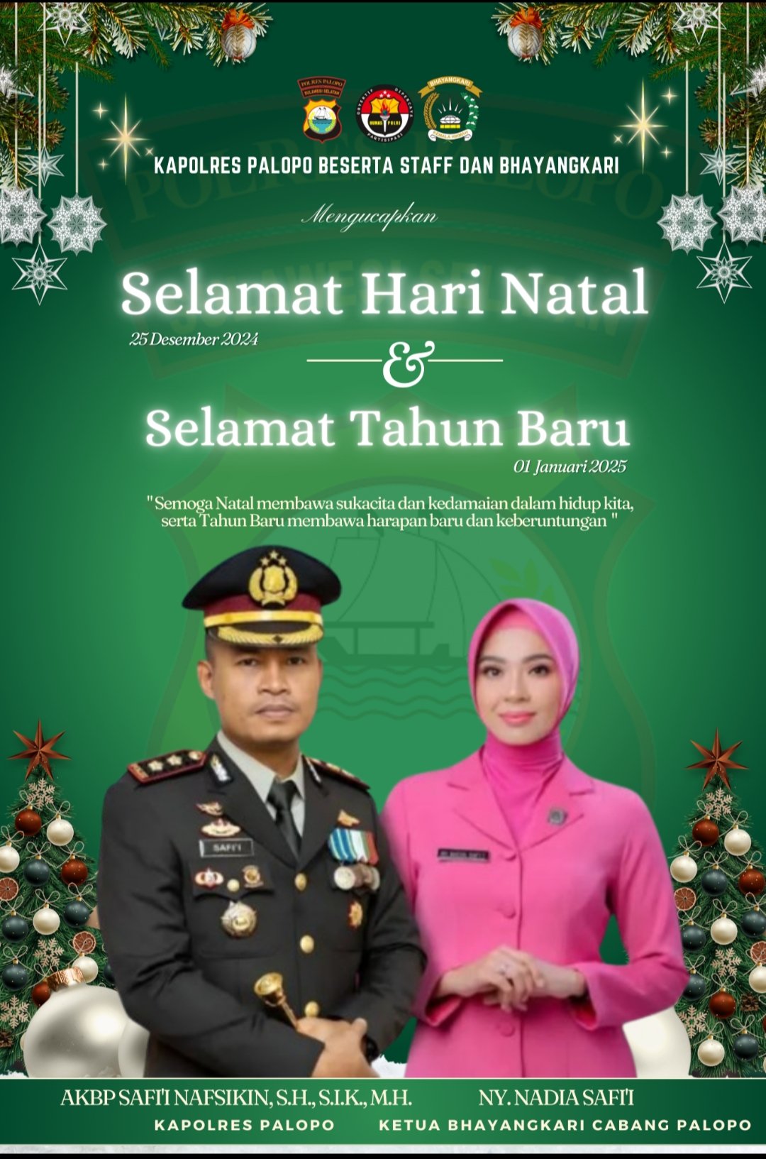 Palopo, Uklikinfo.com-Pada perayaan Natal 2024 dan menjelang Tahun Baru 2025, Kepala Kepolisian Resor (Polres) Palopo, Sulawesi Selatan menyampaikan ucapan selamat yang hangat kepada seluruh masyarakat Indonesia, khususnya kepada umat Kristiani yang merayakan Natal di Kota Palopo.