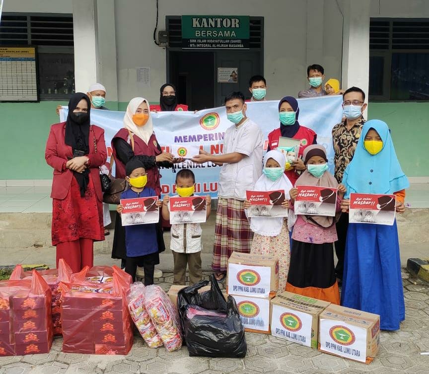 “Adapun sembako yang telah dibagikan ke pesantren Hidayatullah berupa 150 paket kotak nasi, 300 pcs takjil, 50 lembar sarung, mie instan dan beras. Serta 1000 pcs Masker dibagikan ke masyarakat yang melintas di depan RS Andi Djemma Masamba”. Pungkasnya