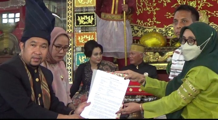 PALOPO,| Peneliti Balai Pelestarian Nilai Budaya (BPNB) Sulawesi Selatan (Sulsel), Iriani menjalani sangsi adat di Istana Kedatuan Luwu, Selasa (31/5/2022).