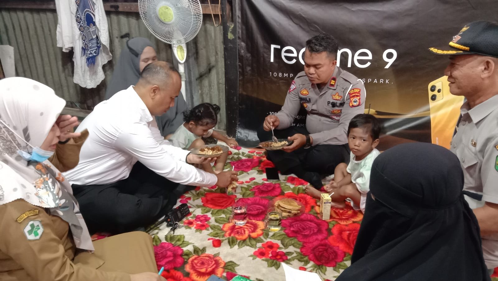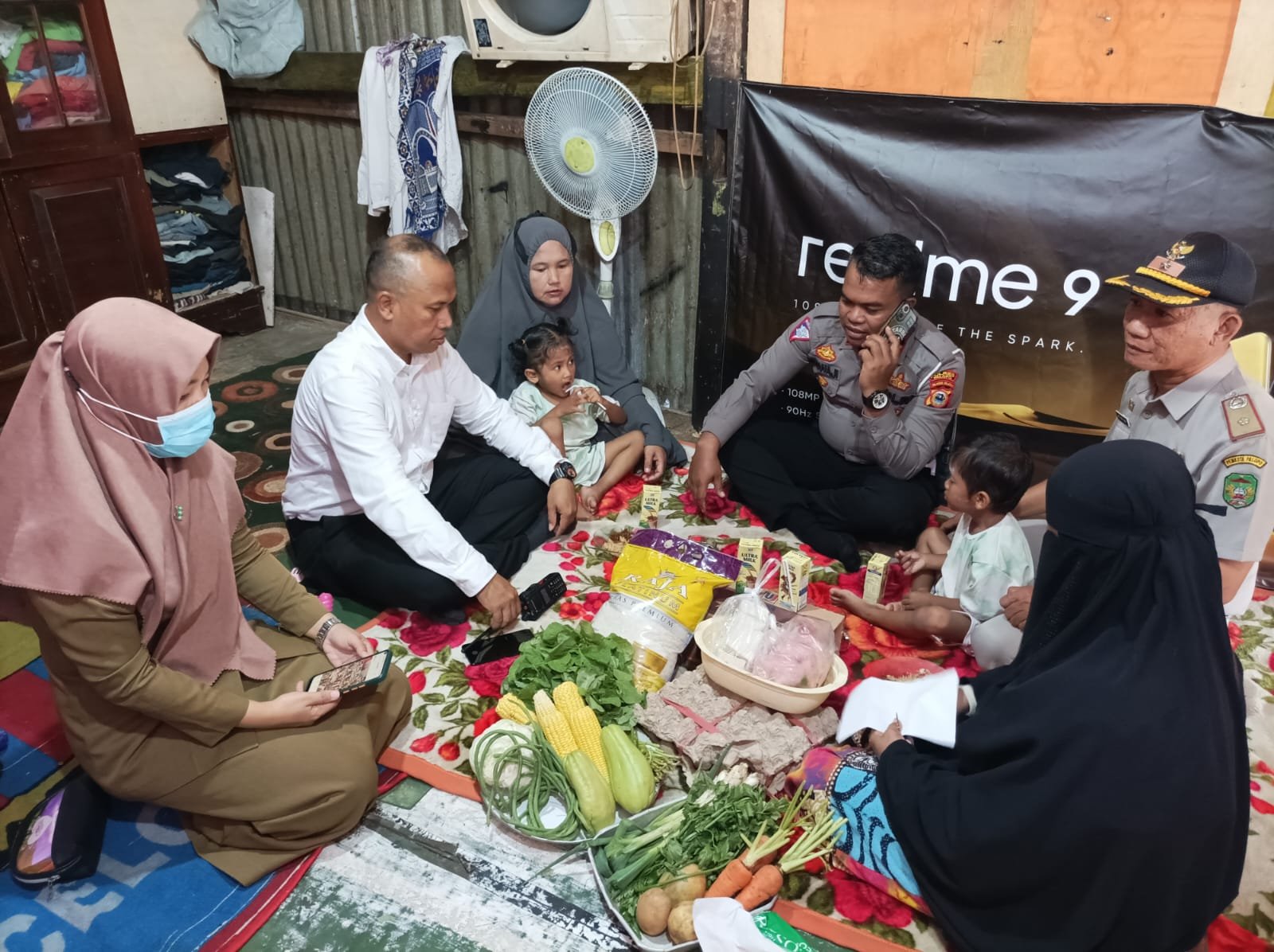 ” kunjungan kami kesini bersama kasat Reskrim yang juga merupakan bapak asuh dari penderita stunting untuk mengetahui secara langsung kondisi anak penderita stunting , serta memberi dorongan moril dan dukungan kepada keluarganya, sekaligus memberikan santunan kepada sang orang tua,” Kata Iptu Siswaji yang tak lain adalah bapak asuh bagi anak penderita stunting.
