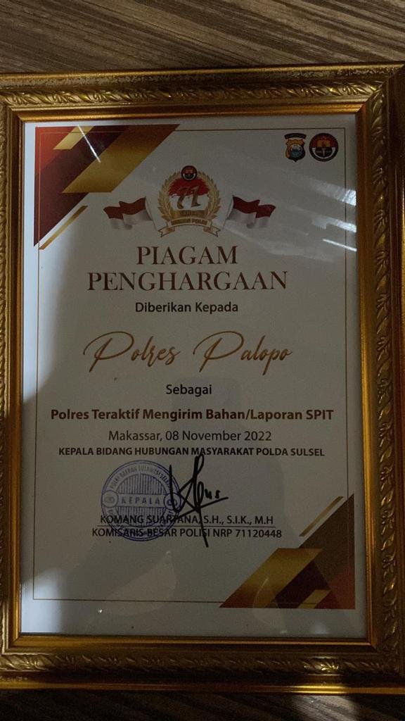MAKASSAR, | Kepolisian Resor Palopo, Sulawesi Selatan kembali menorehkan sejumlah prestasi berupa penghargaan di lingkup polri.