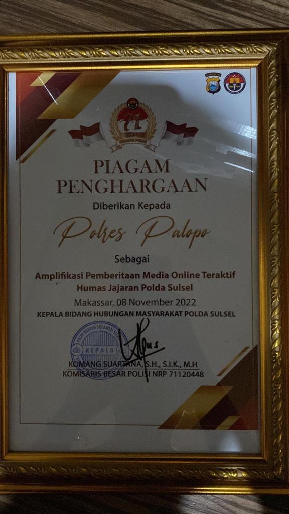 Kabid Humas Polda Sulsel, Kombes Pol Komang Suartana, mengatakan polres palopo menerima tiga kategori penghargaan di lingkup kepolisian.