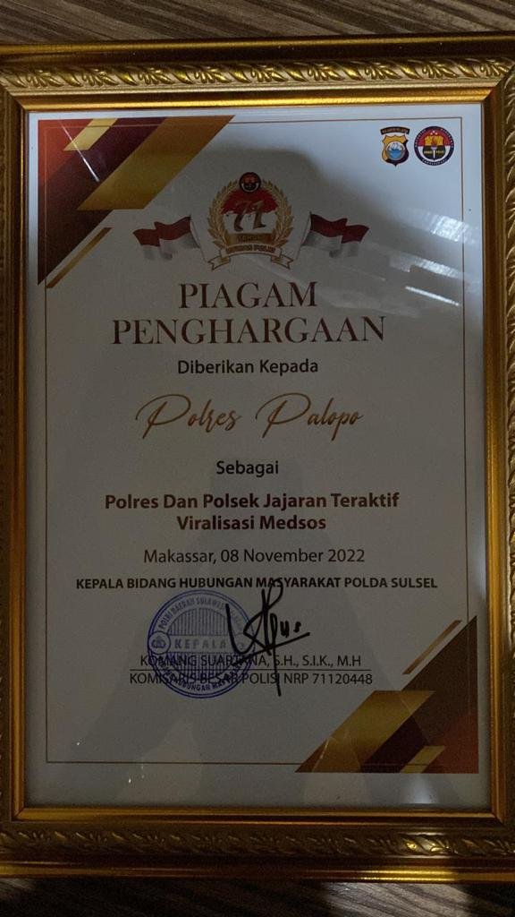 ” Dengan penghargaan tersebut dapat menambah semangat Personil Polres Jajaran Polda Sulsel dalam berkreatif, meningkatkan mutu kinerja dan dapat memperlihatkan Kinerja Polri di media Sosial dan dalam bentuk Pemberitaan,” pungkasnya.