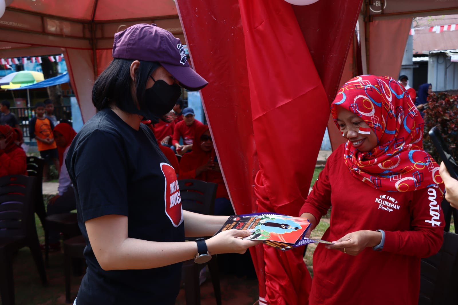 Selain itu tim juga melakukan penyematan pin anti narkoba sebagai bentuk dukungan ke masyarakat dalam memberantas peredaran serta penyalahgunaannya.