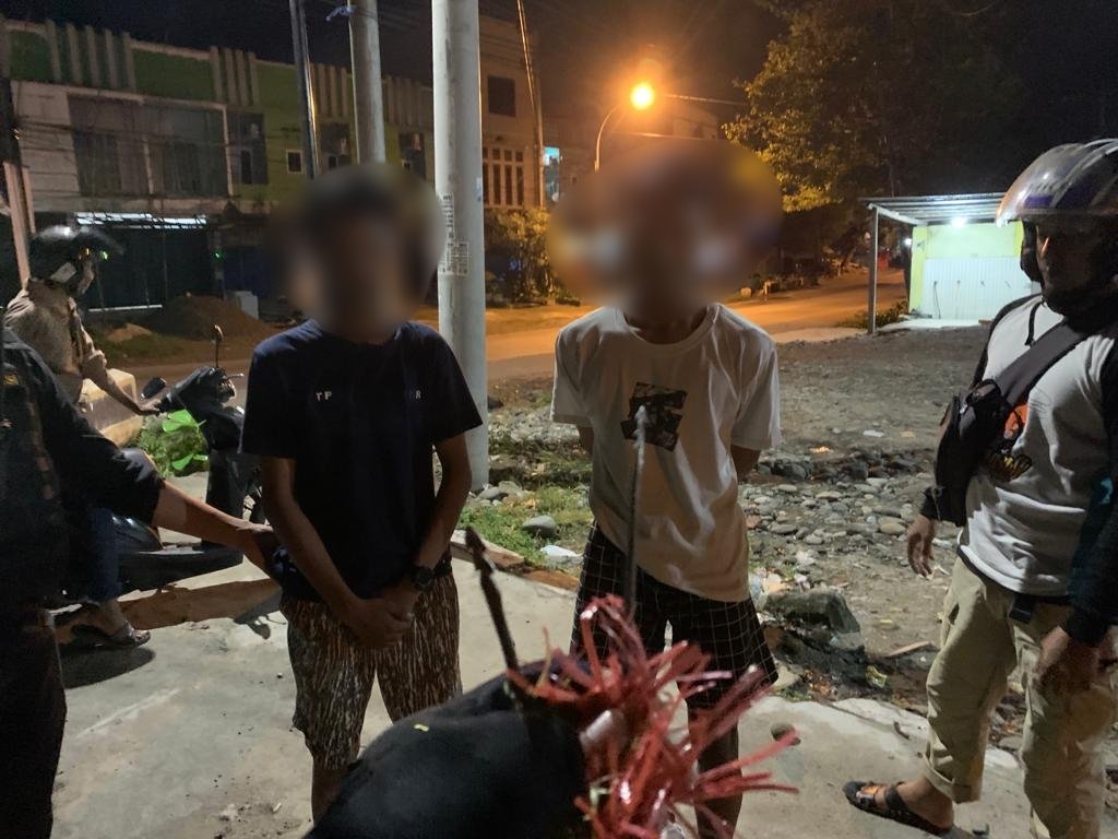 ” Tim berhasil mengamankan dua remaja yang terlihat aksi tawuran dan menemukan anak panah berupa busur yang di sembunyikan pelaku di jaketnya,” Ungkapnya.