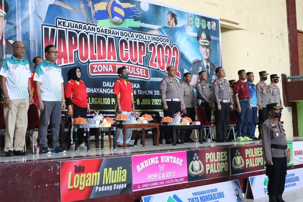 Pembukaan Kejuaraan daerah Bola Volley Indoor Kapolda Cup 2022 Zona III Sulawesi Selatan diawalai dengan Menyanyikan lagu Indonesia raya, Pembacaan Doa, Laporan Ketua Panitia, Pembacaan janji wasit dan atlit serta Amanat Kapolres Palopo yang diwakili oleh Wakapolres Palopo KOMPOL Sanoding, S.H sekaligus membuka secara resmi Kejurda Bola Volly Zona III Piala Kapolda Sulsel tahun 2022.