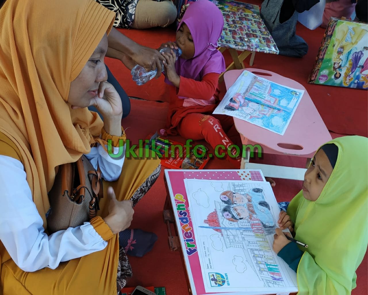 Seorang Ibu Menemani Putrinya Dalam Lomba Anak Mewarnai Pore Expo DPD KNPI Kota Palopo